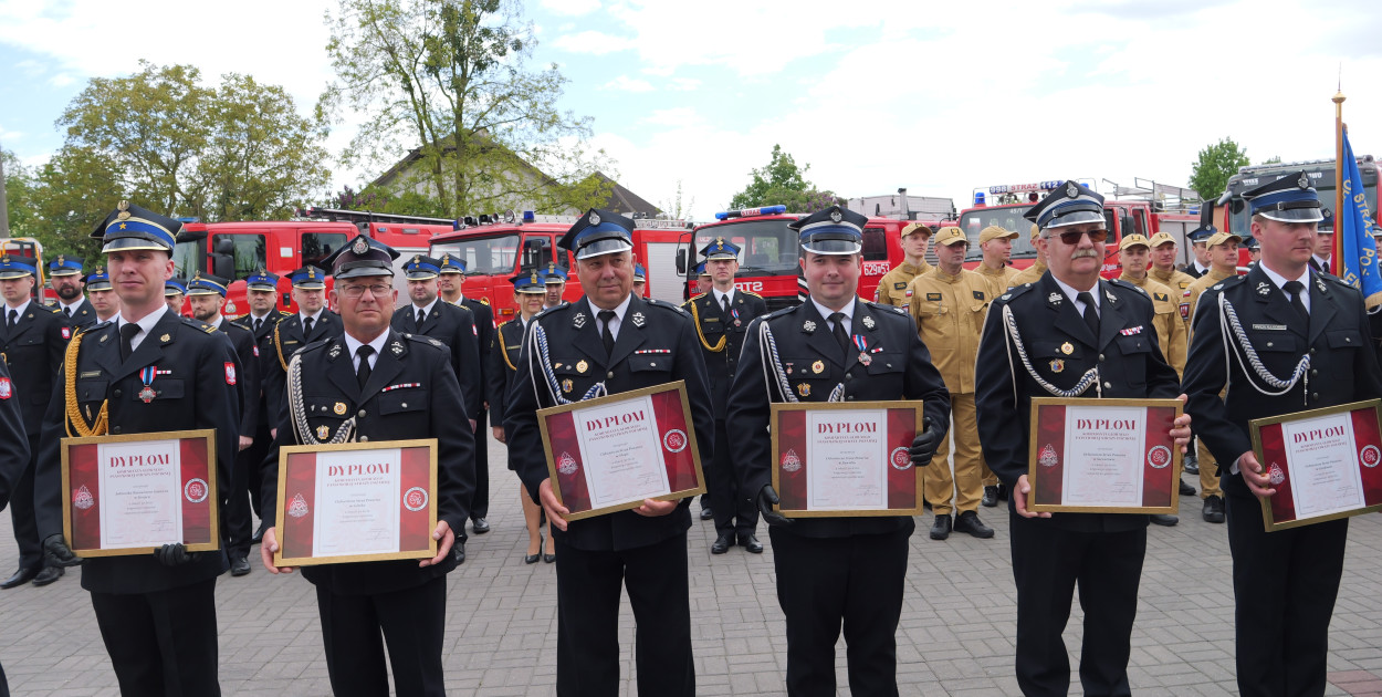 Złoty Medal za Zasługi dla Pożarnictwa otrzymał asp. sztab. Karol Siwiński, srebrny – mł. bryg. Łukasz Chmielewski, brązowy – asp. Radosław Cieślak, mł. ogn. Katarzyna Krzemińska, st. sekc. Krystian Tomaszewski, Przemysław Burzyński (starosta sierpecki), Aneta Ruszkowska (wójt gminy Szczutowo).