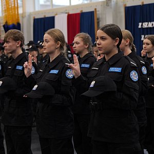 Centralnym elementem uroczystości było ślubowanie złożone przez uczniów drugiej klasy na sztandar szkoły. Drugoklasiści liceum ogólnokształcącego o profilu policyjnym wypowiedzieli rotę, zobowiązując się do systematycznego zdobywania wiedzy i umiejętności, przestrzegania prawa, niesienia pomocy innym oraz dbania o honor, godność i dobre imię szkoły.
