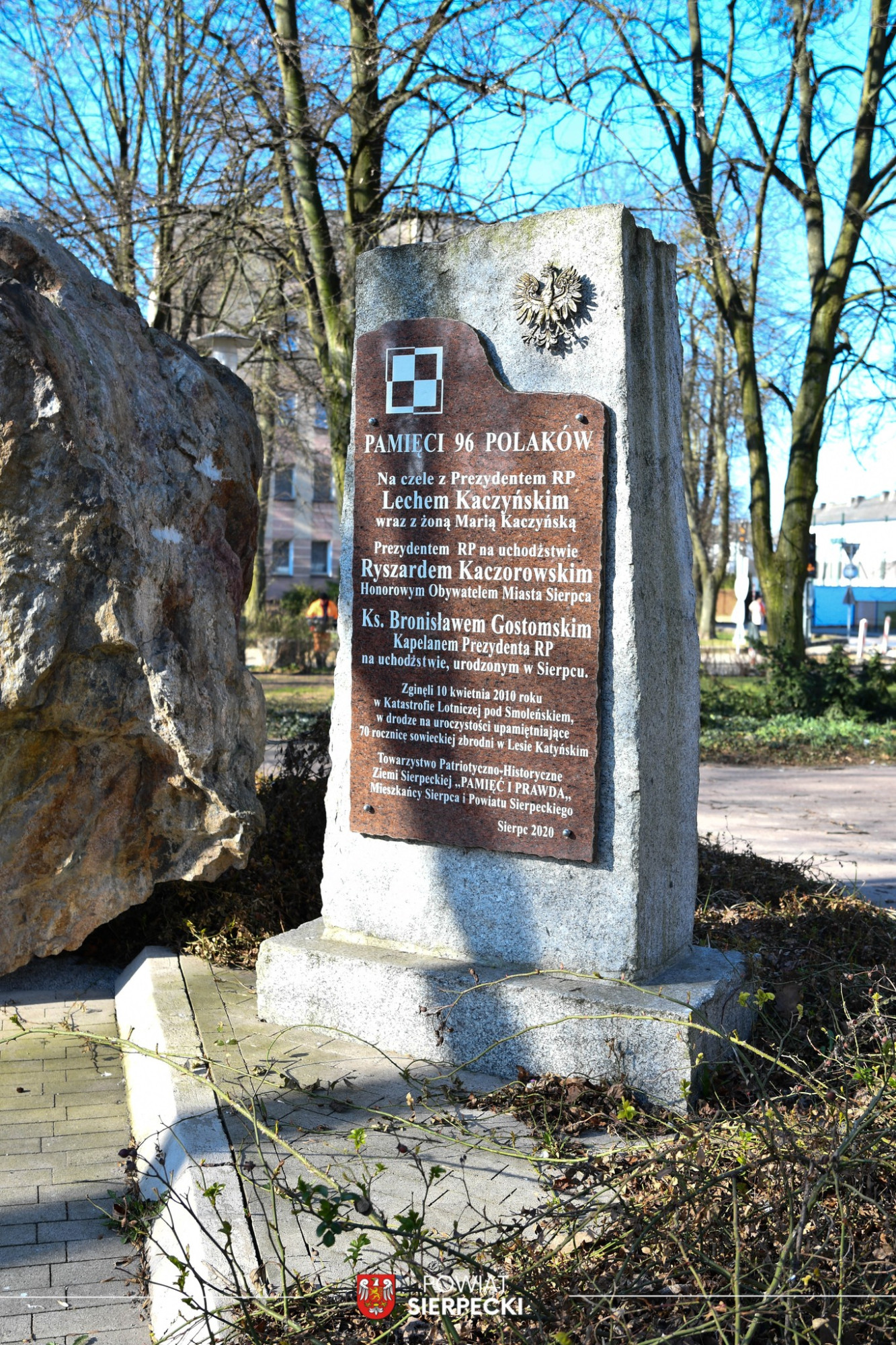 Przy Kamieniu Katyńskim zapalono znicze i złożono biało-czerwone kwiaty. O godz. 8.41, w symbolicznym momencie katastrofy, zatrzymano się, by uczcić ofiary minutą ciszy. W wyniku katastrofy rządowego samolotu pod Smoleńskiem zginęło 96 osób, w tym prezydent Lech Kaczyński wraz z małżonką oraz przedstawiciele najwyższych władz państwowych i dowódcy wojska. Wśród ofiar był także pochodzący z Sierpca ks. Bronisław Gostomski.