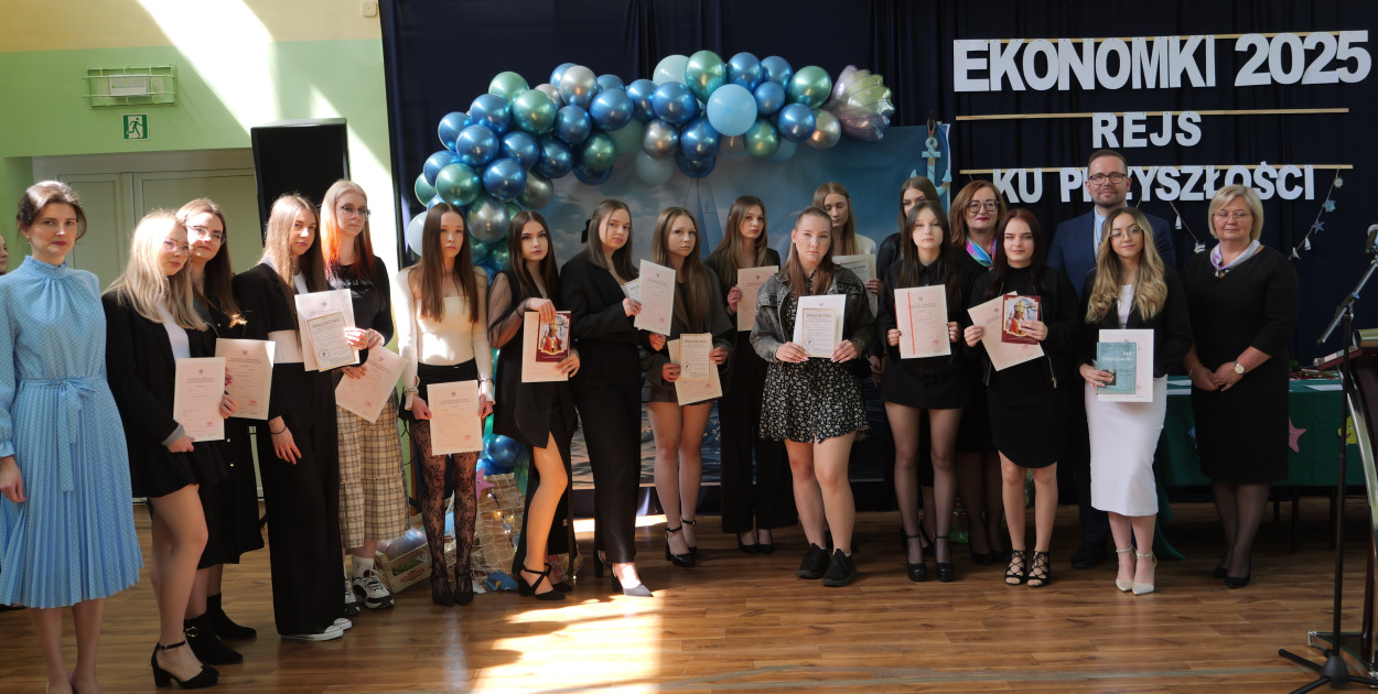 Uroczystość rozpoczęła się poważnie - od uhonorowania najlepszych. Nagrody Starosty Sierpeckiego dla najlepszych tegorocznych absolwentów otrzymały Julia Zalewska (IV LOPP) i Anna Asztemborska (VTG). Wyróżnienia wręczył wicestarosta Piotr Rzeszotarski. Po oficjalnych przemówieniach i podziękowaniach przyszedł czas na galę „Ekonomki 2025”. Tegoroczna edycja miała morską konwencję i właśnie w tym duchu przyznano symboliczne nagrody. Tytuł „Syrenki” – najpiękniejszej uczennicy – przypadł Natalii Lewandowskiej, a miano „Posejdona” – Bartoszowi Nowakowi. W roli „Wędkarza”, czyli szkolnego podrywacza, zapamiętany został Wojciech Urbański. Za „Rybki z ferajny” uznano przyjaciółki: Annę Asztemborską i Olgę Lewandowską. Mateusz Sieciński został wyróżniony jako „SpongeBob”, czyli żartowniś, a Michał Błażejewski – jako „Gdzie jest Nemo?”, czyli znany wagarowicz. Zuzanna Szymańska odebrała nagrodę „Koło ratunkowe” – dla uczennicy zawsze gotowej do pomocy. Tytuł „Złotej rybki” – dla najlepszej uczennicy – trafił do Aleksandry Boryszewskiej. „Fala rozrywki”, czyli najbardziej imprezową uczennicą, została Julia Zalewska, a jej męski odpowiednik, „Rekin nocy”, to Kamil Lisicki. Tytuł „Skalmara”, czyli szkolnego marudy, otrzymał Dariusz Lisicki. Za „Pędzel morskiego horyzontu”, czyli talent artystyczny, wyróżniono Annę Asztemborską. Nagrodzono także wychowawców klas maturalnych. Specjalne wyróżnienia otrzymały: Aleksandra Sawicka, Jolanta Watkowska oraz Maria Gołębiewska.