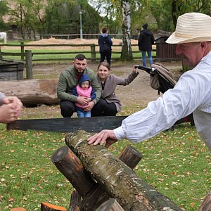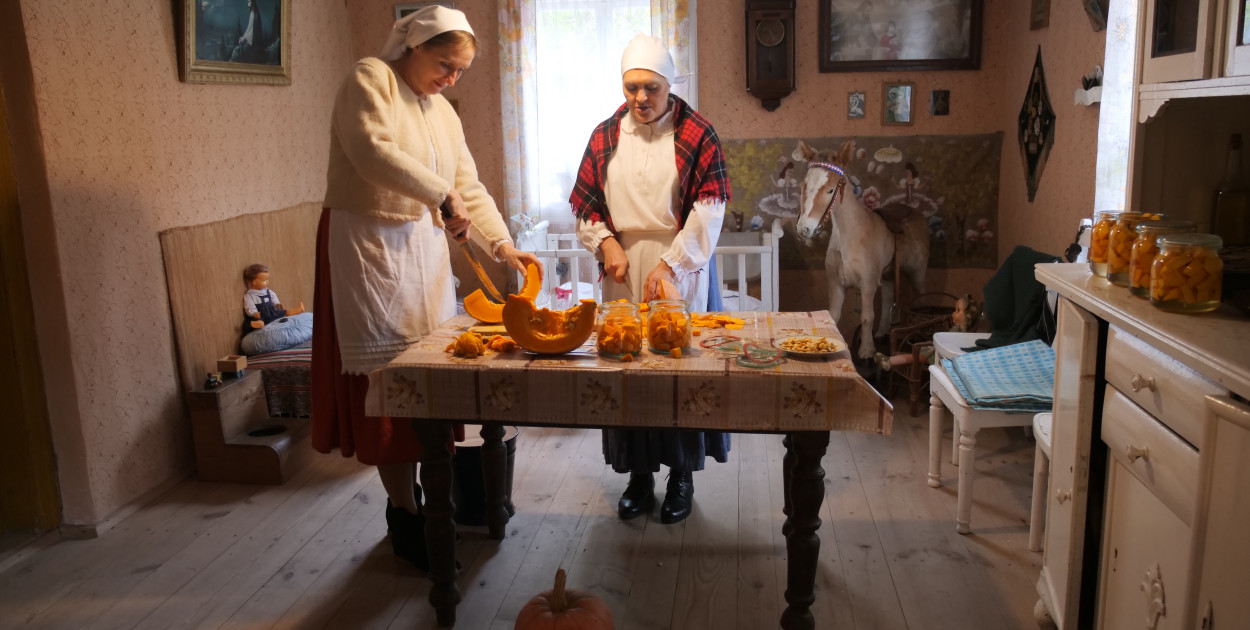 Gospodynie przędły, tkały na krosnach, gospodarze rąbali drewno i cięli sieczkę. Wykonywali też ostatnie prace polowe: orali, bronowali i siali oziminę. W zagrodach pachniało jabłkami i ziołami. Przy starych chatach znów rozbrzmiewały dźwięki kołowrotka i uderzenia młota kowalskiego. Zwiedzający mogli zobaczyć, jak tłoczono sok z jabłek, jak zboże zmieniało się w mąkę i jak z lnu powstawały włókna na koszule i worki. Zainteresowanie budziły też pokazy rzemiosła – pracy kowala, szewca i zielarki, która zdradzała przepisy na ziołowe mikstury.