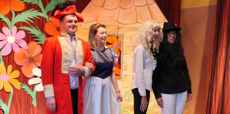 Obsada: Śnieżka-Agnieszka Tomaszewska, Królowa – Macocha – Agnieszka Stankiewicz, Książę – ks. Łukasz Szymański. Służące: Aleksandra Rogowska i Magdalena Szmigielska, Księżna Baśni -dyrektor Anna Trzcińska, Czerwony Kapturek – Katarzyna Burczyk, Wilk- Marek Gadziński, Gajowy- pani dyrektor Anna Ostrowska, Lustereczko- Magdalena Wysocka. Strażnicy: Joanna Jankowska i Wioletta Rydzeńska. Krasnoludki: dyrektor Hanna Kurta, ks. Mateusz Stępka, Agnieszka Malanowska, Iwona Mazurowska, Beata Karkusz, Ewa Doliwa, Krystyna Skowrońska.