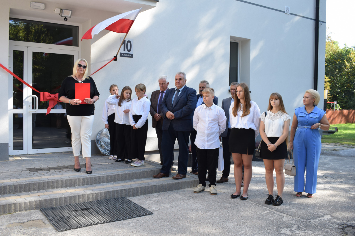 Symbolicznego przecięcia wstęgi dokonali wspólnie wójt Krzysztof Korpoliński, przewodniczący rady Kazimierz Kuligowski, dyrektor szkoły Iwona Wiśniewska, przewodnicząca Rady Rodziców Sylwia Michalska oraz przewodniczący Samorządu Uczniowskiego Bartosz Karolewski.
