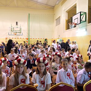 Każda szkoła przygotowała własną interpretację — czasem bardziej podniosłą, czasem pełną dziecięcej naturalności. Publiczność reagowała żywo, a wiele utworów kończyło się brawami jeszcze zanim wybrzmiał ostatni wers.