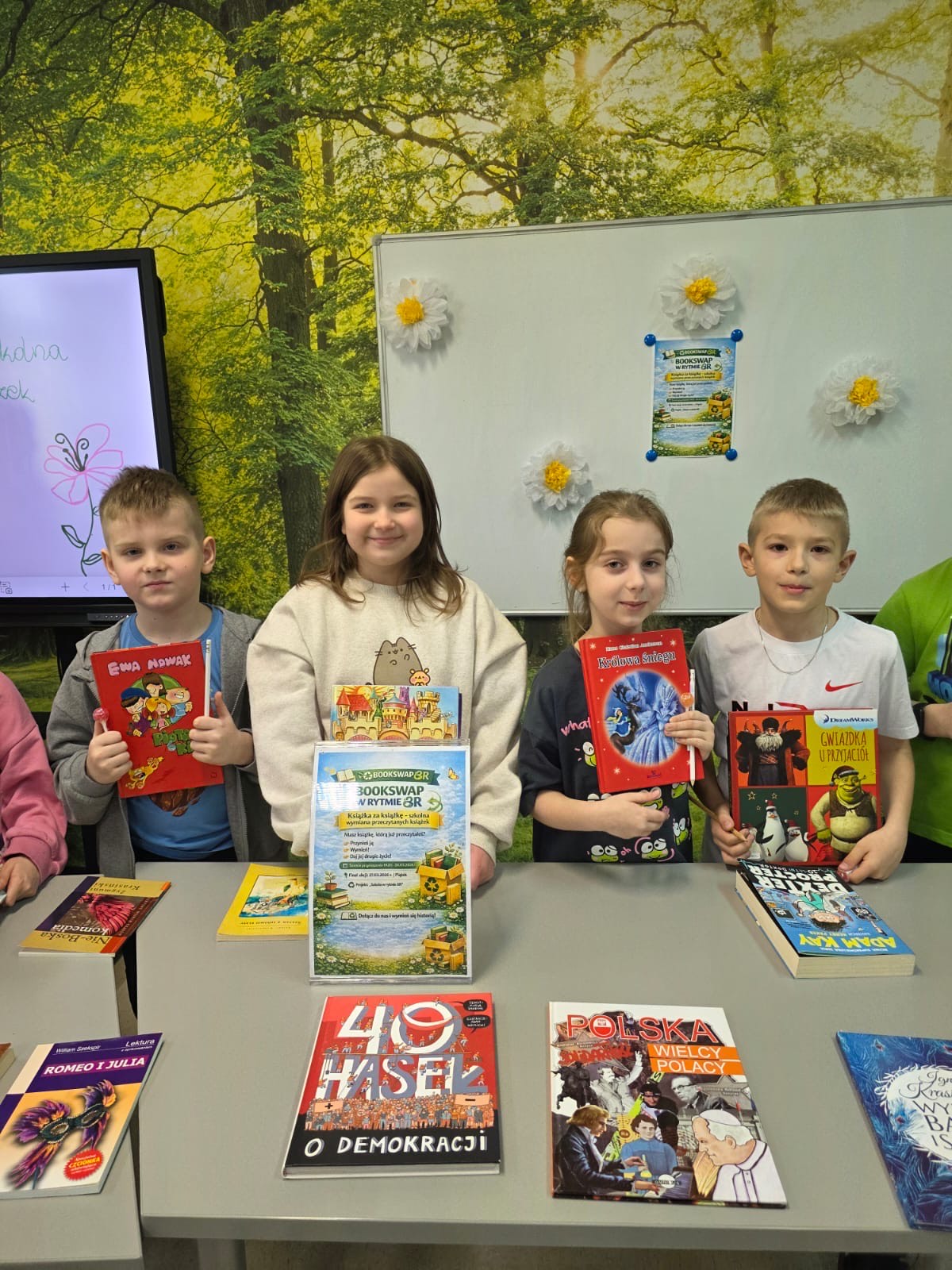 Uczniowie przynosili książki, które już przeczytali, a następnie wymieniali je na nowe, ciekawe tytuły. Dzięki temu wiele publikacji otrzymało drugie życie, a uczniowie mogli odkryć nowe historie i autorów. Akcja była doskonałą okazją do promowania czytelnictwa oraz postaw ekologicznych, zgodnych z zasadą 8R – ponownego wykorzystania rzeczy i dzielenia się nimi z innymi.