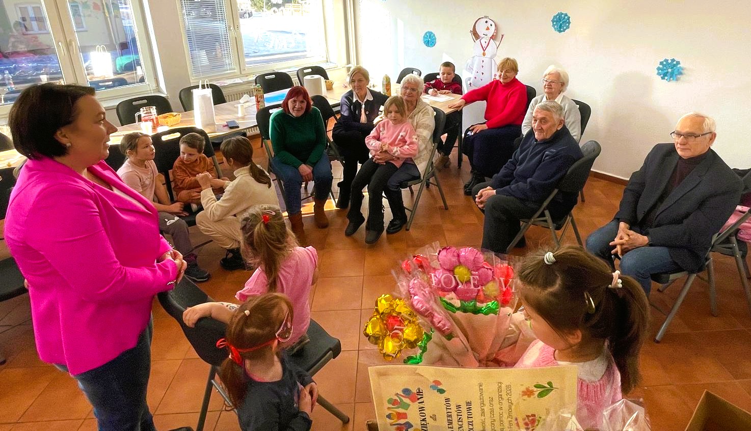 Ferie były także okazją do międzypokoleniowego spotkania dzieci z członkami Koła Emerytów i Rencistów ze Szczutowa. Wspólnie wykonywano kolorowe maski karnawałowe, a gry i zabawy sprzyjały integracji oraz dobrej atmosferze. Tego dnia świetlicę odwiedziła wójt gminy Szczutowo Aneta Ruszkowska, która złożyła seniorom życzenia z okazji Dnia Babci i Dziadka oraz podziękowała osobom zaangażowanym w organizację ferii.