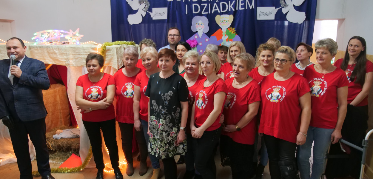 Dzieci z Podlesia przygotowały aż dwa występy artystyczne. W pierwszym przywołały wspomnienia Bożego Narodzenia. A do wspólnego kolędowania zaprosiły panie z KGW. Strażnicę wypełniły słowa kolęd i pastorałek, tych najbardziej znanych „Przybieżeli do Betlejem”, „Do szopy”, „Kolędy dla nieobecnych”. Drugą część występu stanowiła opowieść o tym, jak dziadek z babcią poznali się i pokochali. Nie zabrakło też życzeń i prezentów dla seniorów.
