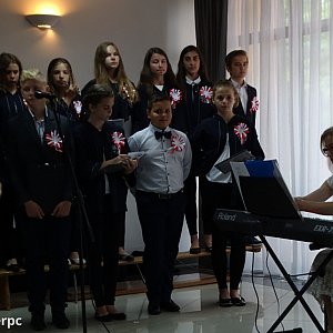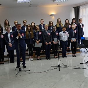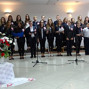 - Jeśli biel symbolizuje piękno i czystość, to jesteś, Polsko, tak piękna i czysta, jak w Mazurkach Chopina. Jeśli w czerwieni kryje się znak cierpienia, to jesteś Polaku tak tragicznie uwikłany, jak w wierszach Zbigniewa Herberta, poety wyklętego, chorego na ojczyznę i demaskowanie w niej zła, jednego z najszlachetniejszych patronów roku 2018 – deklamowała jedna z gimnazjalistek.