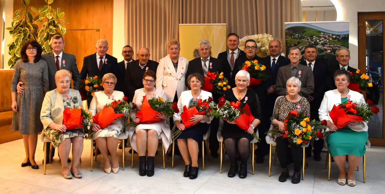 Słowa uznania pod adresem jubilatów, podziękowania za godne i długie pożycie małżeńskie, za piękny przykład dla młodego pokolenia oraz aktu dekoracji medalami w imieniu Prezydenta Rzeczypospolitej Polskiej dokonał wójt Zbigniew Tomaszewski. Życzenia i gratulacje złożyli również zaproszeni goście.