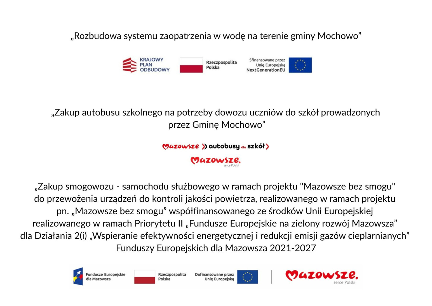 Podczas wydarzenia zaprezentowano również nowy autobus szkolny, zakupiony z myślą o bezpiecznym i komfortowym dowozie uczniów do szkół na terenie gminy. Pojazd jest przystosowany do przewozu osób z niepełnosprawnościami i wyposażony w nowoczesne systemy bezpieczeństwa. Gmina Mochowo nabyła smogowóz – elektryczny samochód przystosowany do przewożenia specjalistycznej aparatury do kontroli jakości powietrza.