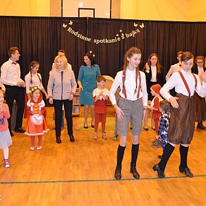Spotkanie rozpoczęły rodzinne występy, podczas których uczestnicy prezentowali swoje interpretacje bajek oraz piosenek. Wszyscy zgromadzeni udali się w podróż do świata magii, radości, pełnego pozytywnej energii. Pojawił się fragment z „Kubusia Puchatka”, ciekawa aranżacja o krasnalach, dwa niezwykle oryginalne występy o „Czerwonym Kapturku”. Zgromadzeni mogli usłyszeć piosenki z bajek „Kraina Lodu”, „Trolle” i „Zaplątani”. Nie zabrakło kołysanek „Już gwiazdy lśnią” oraz „Na Wojtusia z Popielnika Iskiereczka mruga”. Wykonawcy zadbali o odpowiednie stroje, charakteryzację, choreografię i scenografię. Każdy występ nagradzany był gromkimi brawami, zarówno dla dzieci, jak i dla rodziców, dzielnie wspierających swoje pociechy.