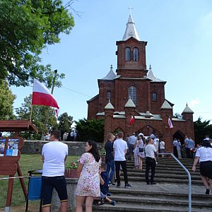 Po zakończeniu nabożeństwa biało-czerwony korowód przeszedł na boisko szkoły w Ostrowach.
