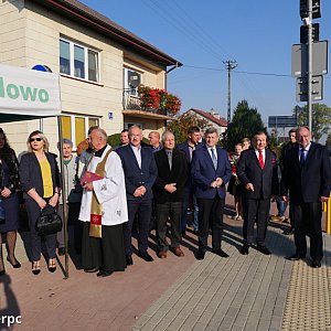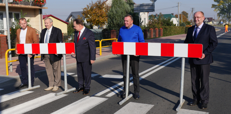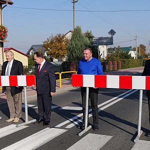 Zamiast przecięcia symbolicznej wstęgi odstawiono zapory drogowe. Nową inwestycję poświęcił ks. Franciszek Kuć.