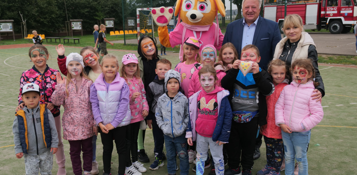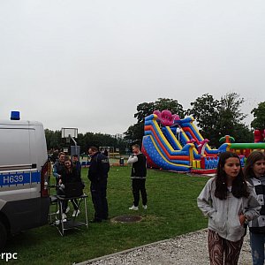 Po sportowych emocjach na szkolnym boisku pojawiła się pani animator, która zapewniła rozrywkę najmłodszym dzieciom. Dzieci korzystały również z dmuchańców i symulatora jazdy jednośladem. Maluchy z ciekawością zaglądały do wozu strażackiego i radiowozu.