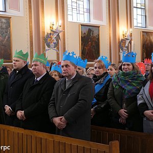 Przed kościołem na chwilę zatrzymano się, by posłuchać opowieści o wędrówce trzech mędrców, przygotowanej przez uczniów ze Szkoły Podstawowej w Lelicach. Odczytali fragment Ewangelii wg św. Mateusza: „Gdy zaś Jezus narodził się w Betlejem w Judei za panowania króla Heroda, oto Mędrcy ze Wschodu przybyli do Jerozolimy i pytali: «Gdzie jest nowo narodzony król żydowski? Ujrzeliśmy bowiem jego gwiazdę na Wschodzie i przybyliśmy oddać mu pokłon». Skoro to usłyszał król Herod, przeraził się, a z nim cała Jerozolima. Zebrał więc wszystkich arcykapłanów i uczonych ludu i wypytywał ich, gdzie ma się narodzić Mesjasz. Ci mu odpowiedzieli: «W Betlejem judzkim, bo tak napisał Prorok: A ty, Betlejem, ziemio Judy, nie jesteś zgoła najlichsze spośród głównych miast Judy, albowiem z ciebie wyjdzie władca, który będzie pasterzem ludu mego, Izraela» Wtedy Herod przywołał potajemnie Mędrców i wypytał ich dokładnie o czas ukazania się gwiazdy. A kierując ich do Betlejem, rzekł: «Udajcie się tam i wypytujcie starannie o Dziecię, a gdy Je znajdziecie, donieście mi, abym i ja mógł pójść i oddać Mu pokłon». Oni zaś wysłuchawszy króla, ruszyli w drogę”.