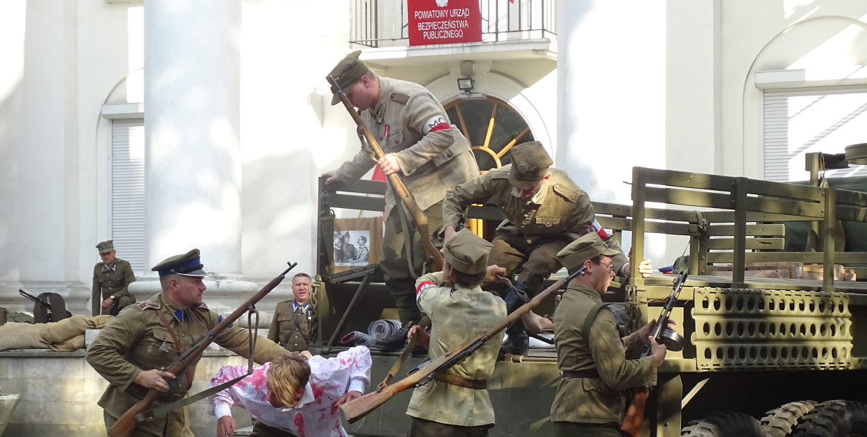 Najpierw rozległa się muzyka. Stare piosenki sprawiły, że sierpczanie z zaciekawieniem zaczęli przybywać pod budynek Sądu Rejonowego. I z każdą chwilą odkrywali coraz więcej nowych szczegółów. Stare wojskowe samochody, nowy szyld z napisem „Powiatowy Urząd Bezpieczeństwa Publicznego”, worki, na których opierają się karabiny maszynowe, wielki ogłoszeniowy słup z plakatami o walce z „wrogami narodu i zaplutymi karłami reakcji” i obwieszczeniem o poszukiwaniu ukrywających się „bandytów”. Niektórzy już wiedzieli o mających się rozegrać scenach, inni zaciekawieni słuchali opowieści ks. Dariusza Multona.