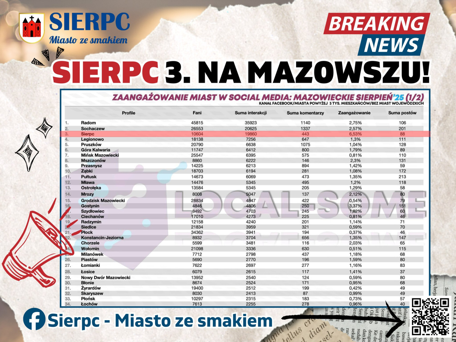 Miasto Sierpc zajęło trzecie miejsce w sierpniowym zestawieniu aktywności samorządów w mediach społecznościowych przygotowanym przez Local Some – Samorządowy Kongres Internetu i Mediów Społecznościowych.