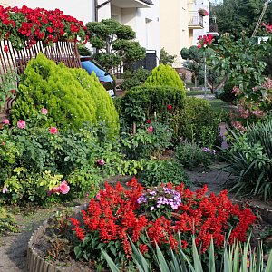 — Ogródek pielęgnujemy od ponad trzydziestu lat, właściwie od czasów, jak tylko wprowadziliśmy się do bloku. Ma on charakter ogródka skalnego, są w nim iglaki, clematisy, hortensje, róża. Pomagał mi go robić jeszcze mój tata, który zaraził mnie pasją do ogrodnictwa. Rośliny zaczynają w nim kwitnąć od marca i kwitną aż do przymrozków — opowiadała pani Ania.