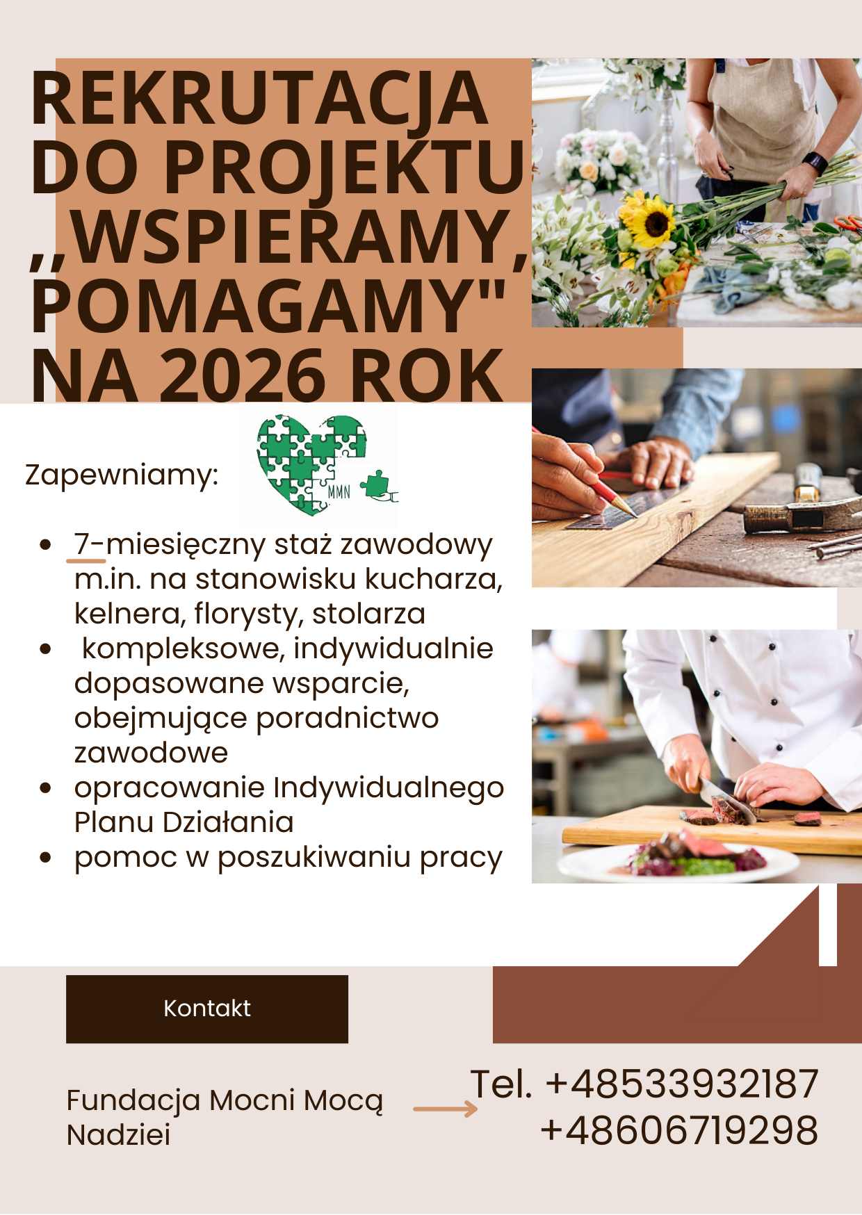 Trwa rekrutacja do projektu „Wspieramy, pomagamy!” na 2026 rok. Osoby z orzeczeniem o stopniu niepełnosprawności mogą zdobyć nowe umiejętności i doświadczenie przydatne na rynku pracy. Uczestnicy projektu otrzymają indywidualne wsparcie, w tym poradnictwo zawodowe, opracowanie Indywidualnego Planu Działania oraz pomoc w poszukiwaniu pracy.