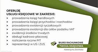 Promuj ogłoszenieSzukasz dobrego biura rachunkowego? Umów się na bezpłatną wycenę naszych usług księgowych. Głównym celem naszej działalności jest stworzenie naszym Klientom ... czytaj więcej