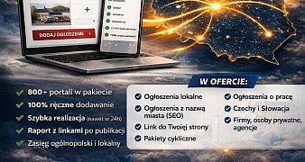 Promuj ogłoszenieSzukasz skutecznej promocji swojej firmy w internecie? Zamów pakiet publikacji ogłoszeń na wielu portalach - a w ramach bonusu otrzymasz ... czytaj więcej