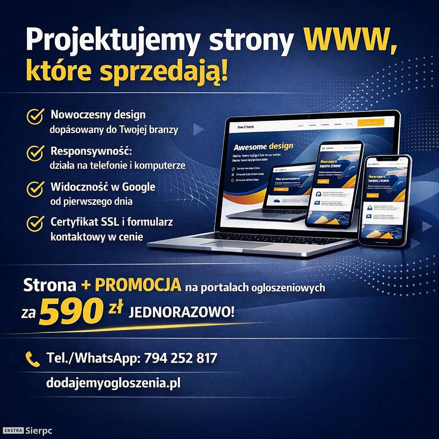 Zajmujemy się też kompleksową promocją firm w internecie. Jeśli chcesz dotrzeć do większej liczby klientów - publikujemy ogłoszenia na dziesiątkach popularnych portali ogłoszeniowych w całej Polsce. Skutecznie, szybko i w przystępnej cenie. Zapytaj nas o szczegóły!
