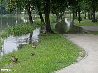 Nie wszyscy są niezadowoleni z podtopień. Bociany spotkaliśmy na łące w okolicach Łukomia 23.06.2020 r.