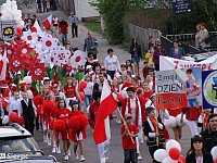 Flagi biało-czerwony, z symbolami miasta, a także Unii Europejskiej zawisły na wielu budynkach w Sierpcu.