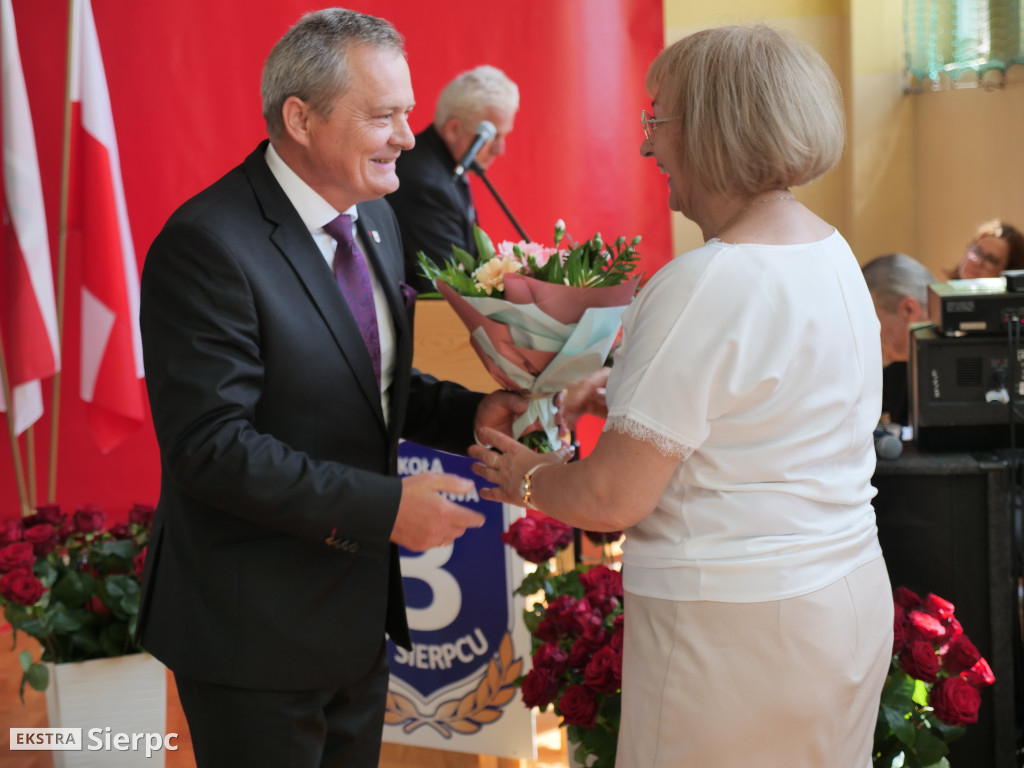 W czwartek, 23 czerwca 2022 r., w Szkole Podstawowej nr 3 w Sierpcu odbyła się uroczystość pożegnania dyrektor Ewy Rycharskiej i uczniów klas ósmych.